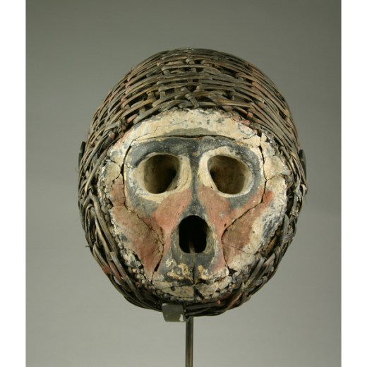 Vegetable fiber, monkey skull, clay
