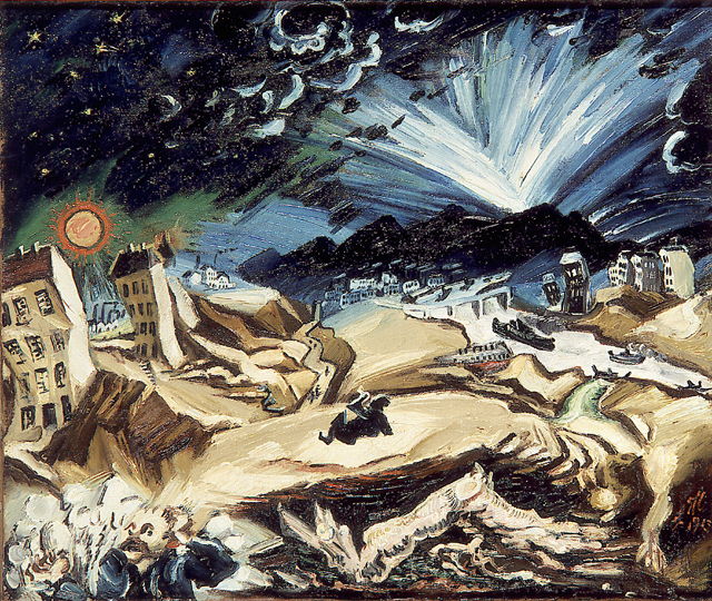Ripped haversacks, broken rifles, scraps of cloth, counterpointed grotesquely with children’s toys, shell fuses, deep craters from explosions, bottles, harvest implements, shredded books, battered household gear, holes whose gaping darkness betrayed the presence of basements, where the bodies of the unlucky inhabitants of the houses were gnawed by the particularly assiduous swarms of rats; a little espaliered peach tree despoiled of its sustaining wall, and spreading its arms pitifully; in the cattle byres and stables and barns the bones of livestock still dangling from their chains; trenches dug through the ravaged gardens, in among sprouting bulbs of onions, wormwood, rhubarb, narcissus, buried under weeds; on the neighboring fields grain barns, through whoses roofs the grain was already sprouting; all that, with a half-buried communication trench running through it, and all suffused with the smell of burning and decay.