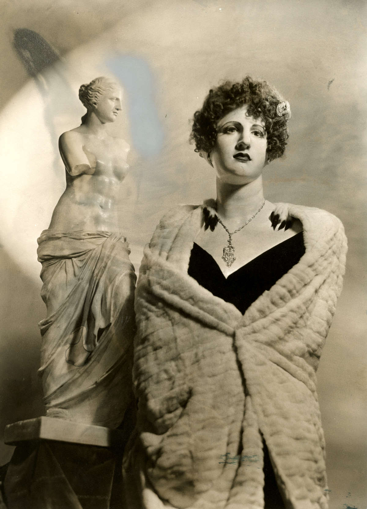 The cast of the famous statue “Venus de Milo” has a wig, makeup and clothing, made by Mr.. Senz, and the make-up department of Paramount Pictures. Left the ‘bare’molding. Photos from 1938,