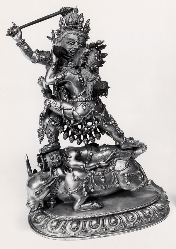 A gilded bronze figure of the Dharmapāla Yamari or (after von Schroeder 1981) Rakta-Yamantaka (ie Rakta [red]-Yamari [enemy of Yama]); in yab-yum mode